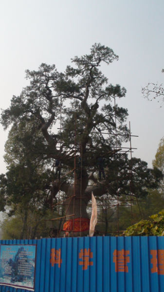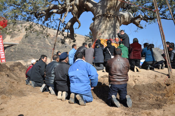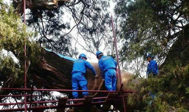 延安市南溝門水利樞紐工程是經(jīng)國家發(fā)改委批準(zhǔn)立項建設(shè)的中型水利樞紐工程。該水利工程淹沒區(qū)范圍內(nèi)史家河村生長著一株樹齡兩千年以上的側(cè)柏,地徑3.05米,高度18.5米,屬我國僅存不多的特大古柏樹,當(dāng)?shù)胤Q其為“武帝柏”,又名“老君柏”。按古樹名木保護(hù)相關(guān)規(guī)定,經(jīng)林業(yè)專家研究、論證,報請省政府批準(zhǔn),對“武帝柏”進(jìn)行保護(hù)性移植。