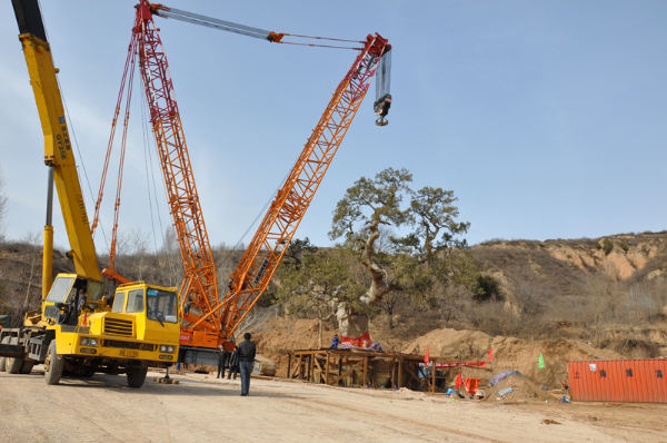 為確保吊裝成功,租用國內(nèi)先進(jìn)的650噸履帶吊車。